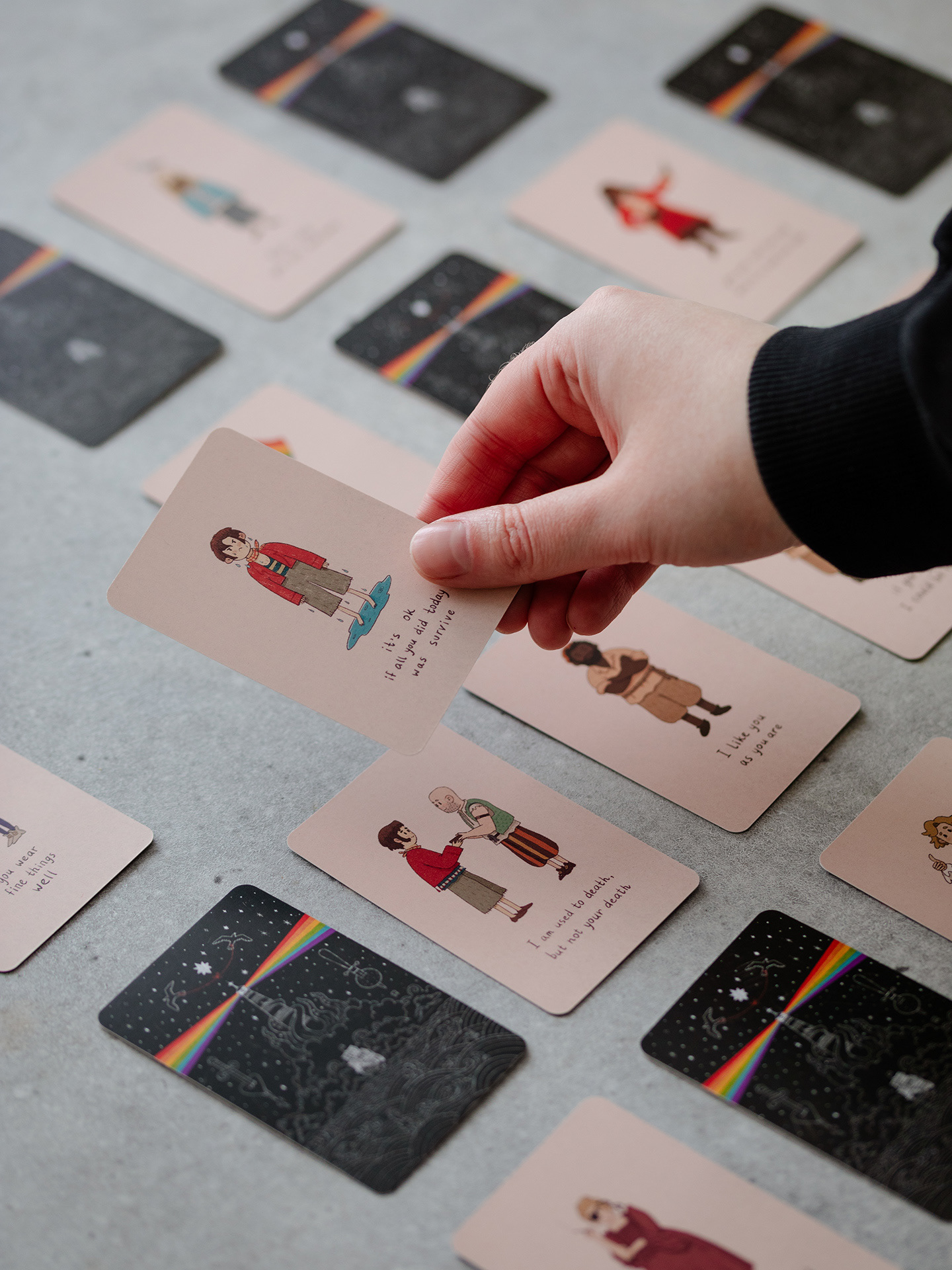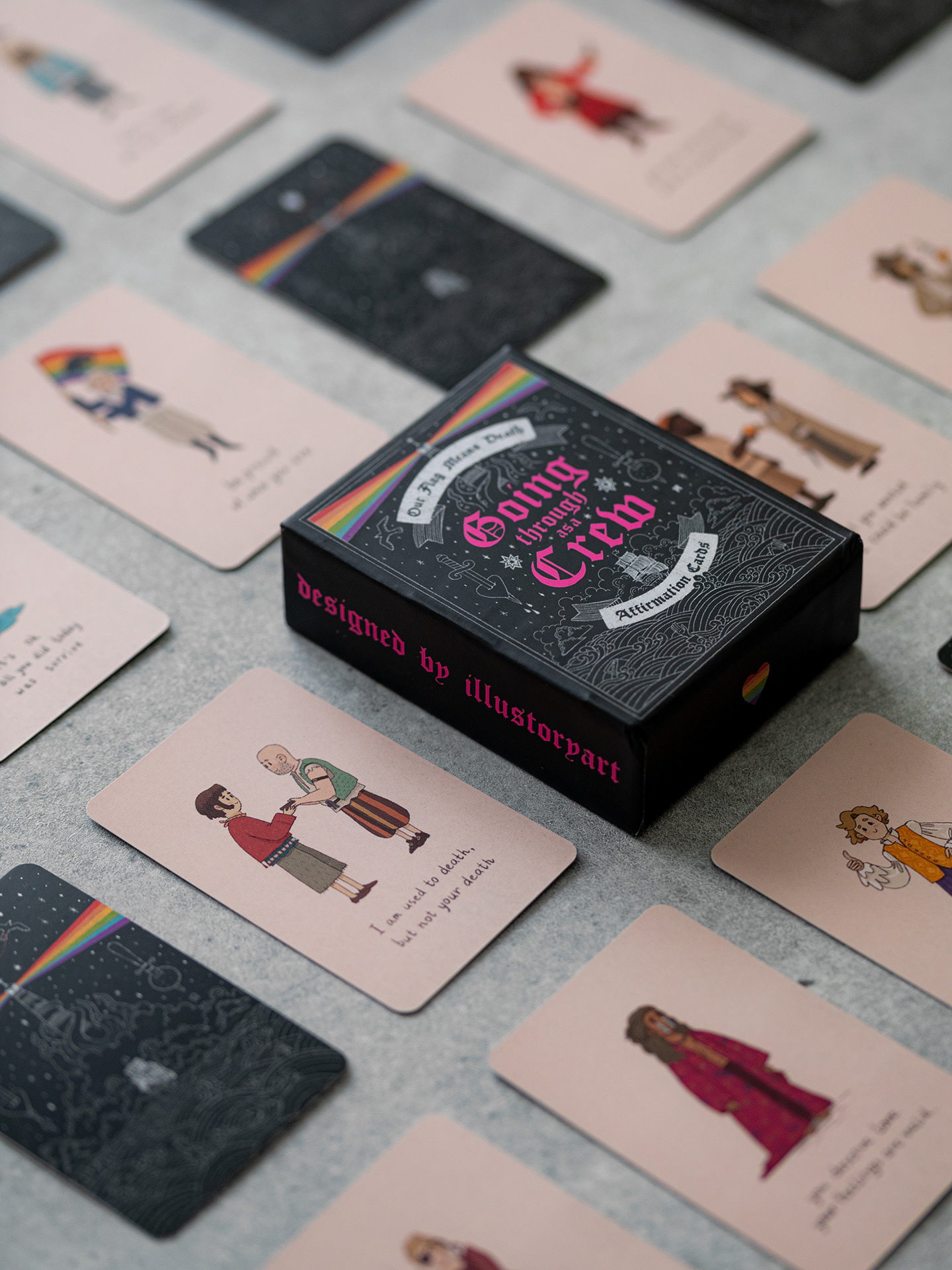 Going Through as a Crew is a series of LGBT+ friendly affirmation cards created to provide psychological support during difficult times.